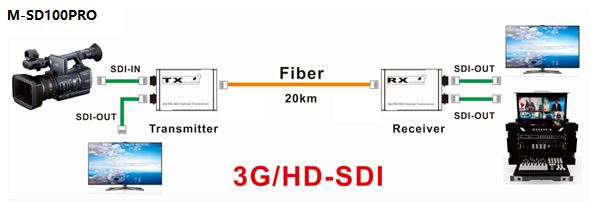 *通过光纤长距离地传输3G/HD-SDI视频和音频信号可达20公里;
