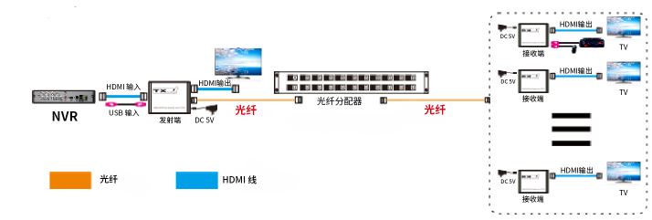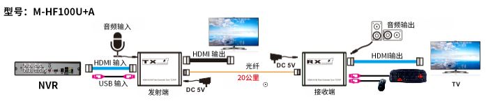 ·通过光纤长距离地传输HDMI视频和音频信号,可达20公里;