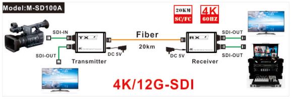 ·通过光纤长距离地传输4K/12G- SDI视频和音频信号,可达3-20公里l 高清视频信号分辨率最高可达到2160P@60Hz