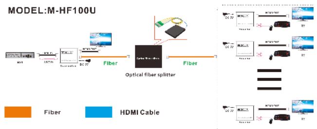 *支持通过光纤分路器或光纤交换机实现一发多收 (实现分配功能)